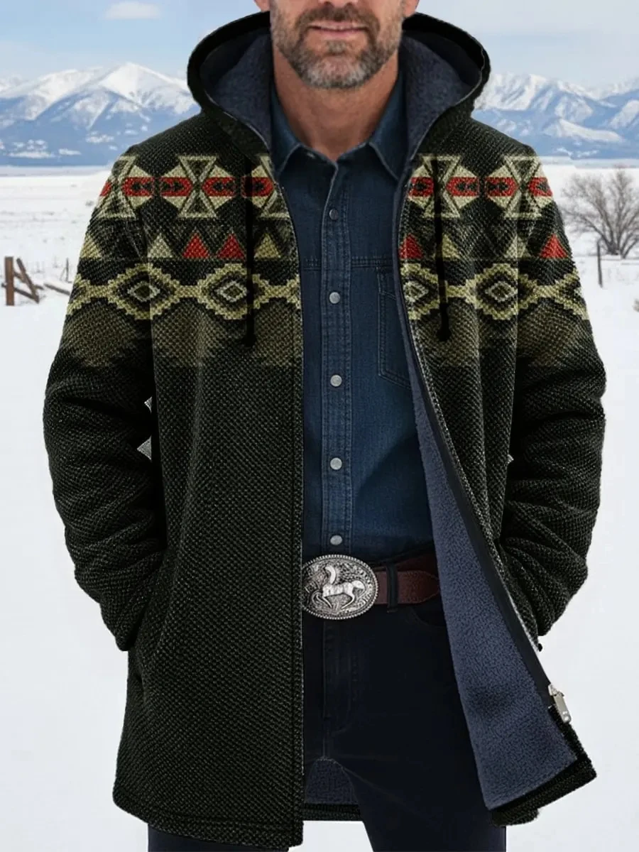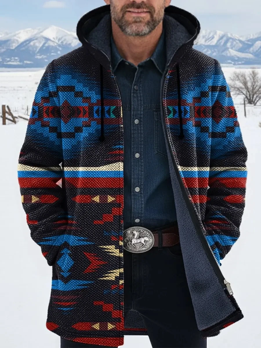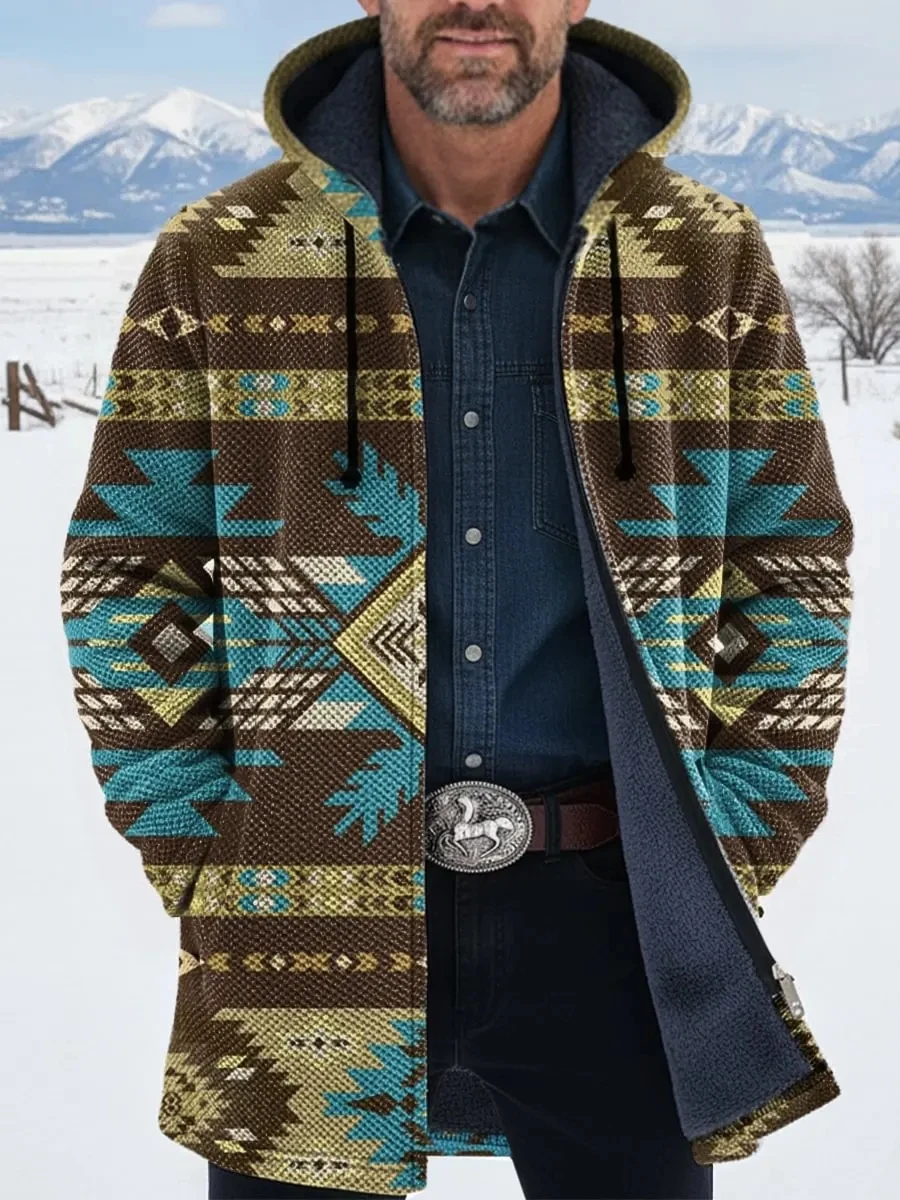 New Fashion Winter Men's Zipper Cloak Aztec Art 3D Printed Plush Thick Zipper Hoodie Neutral Street Casual Thick Warm Jacket